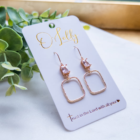 Clear Glass Connector w/Textured Open Rectangle Dangle Earrings- Lilith