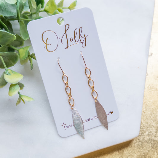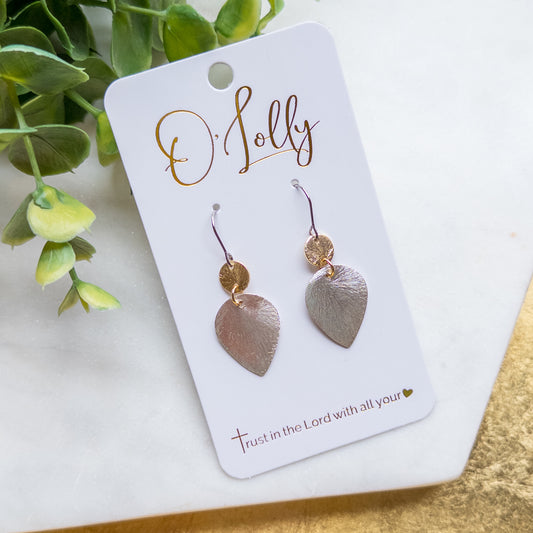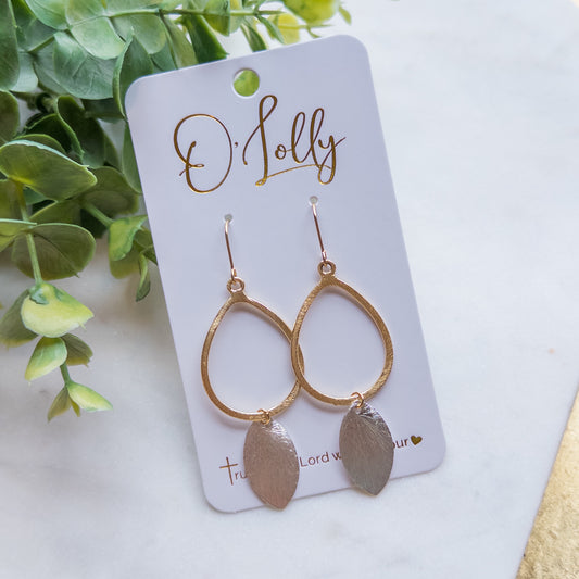 Gold & Silver Mixed- Open Gold Teardrop w/Silver Leaf Shaped Dangle - M3