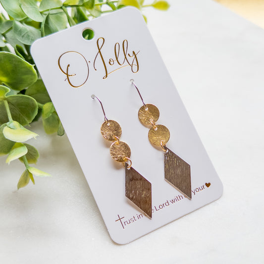 Gold & Silver Mixed- Textured Gold Discs w/Silver Diamond Shaped Dangle