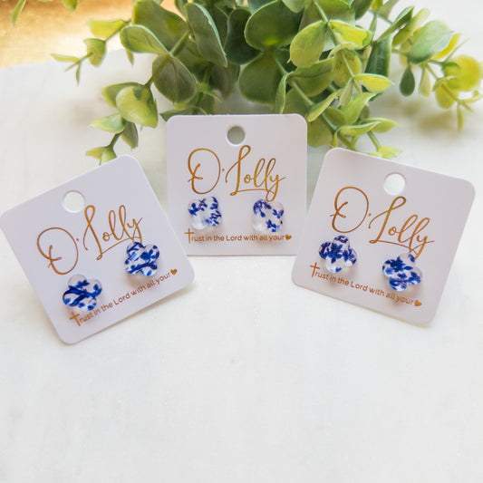 Acrylic Blue & White Stud Earrings
