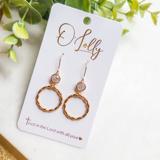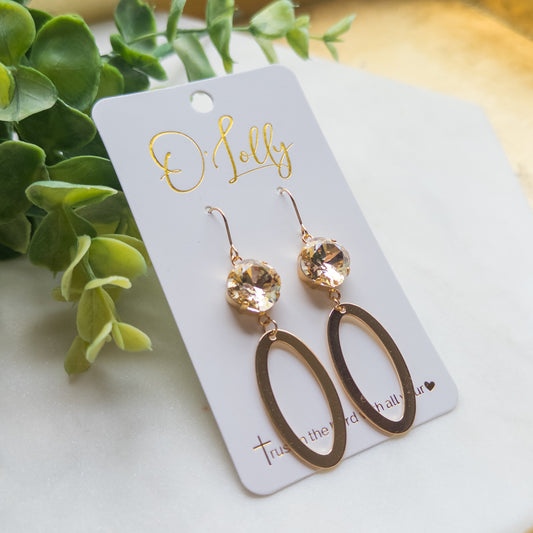 Topaz Stone w/Gold Shiny Open Oval Dangle Earrings “Elise”