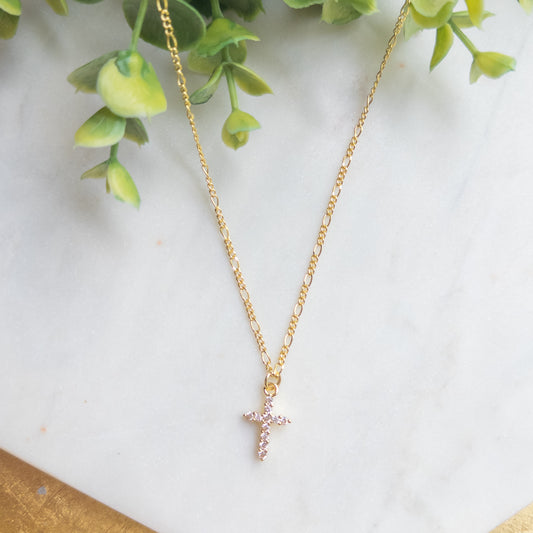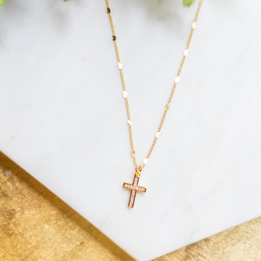 18K Gold Plated Chain w/Rhinestone Cross Necklace