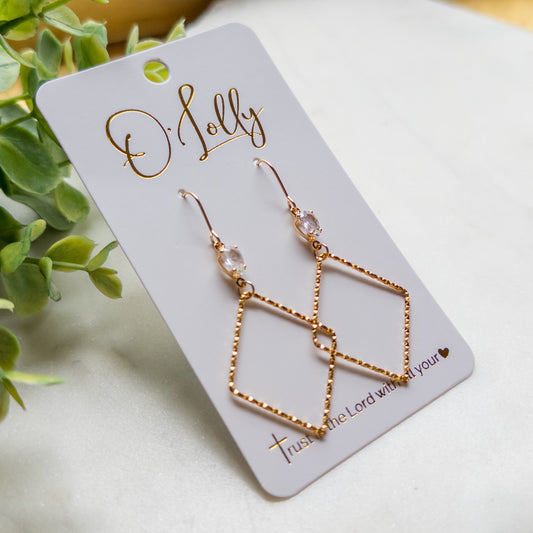18K Cubic Zirconia Connector w/Gold Plated Textured Rhombus Dangle Earrings “Devin”