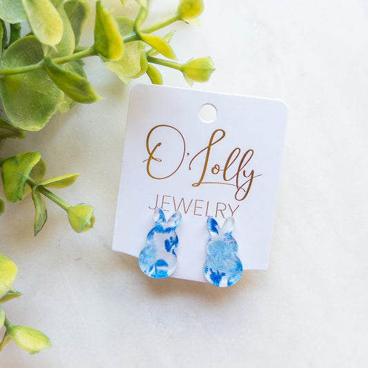 Dainty Acrylic Bunny Dangle Earrings w/CZ Connector- Easter 8
