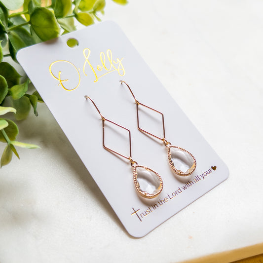 Elegant Crystal Teardrop Geo Dangle Earrings “Emory”
