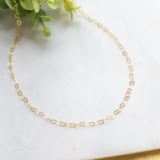 18K Gold Plated Heart Linked Chain Necklace