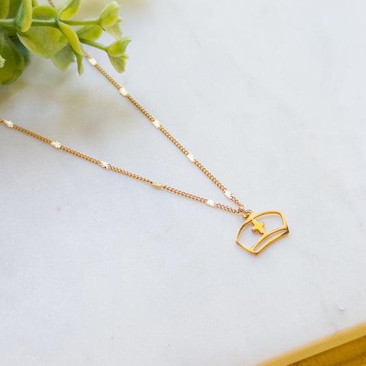 18K Gold Plated Chain Nurse Hat Pendant Necklace