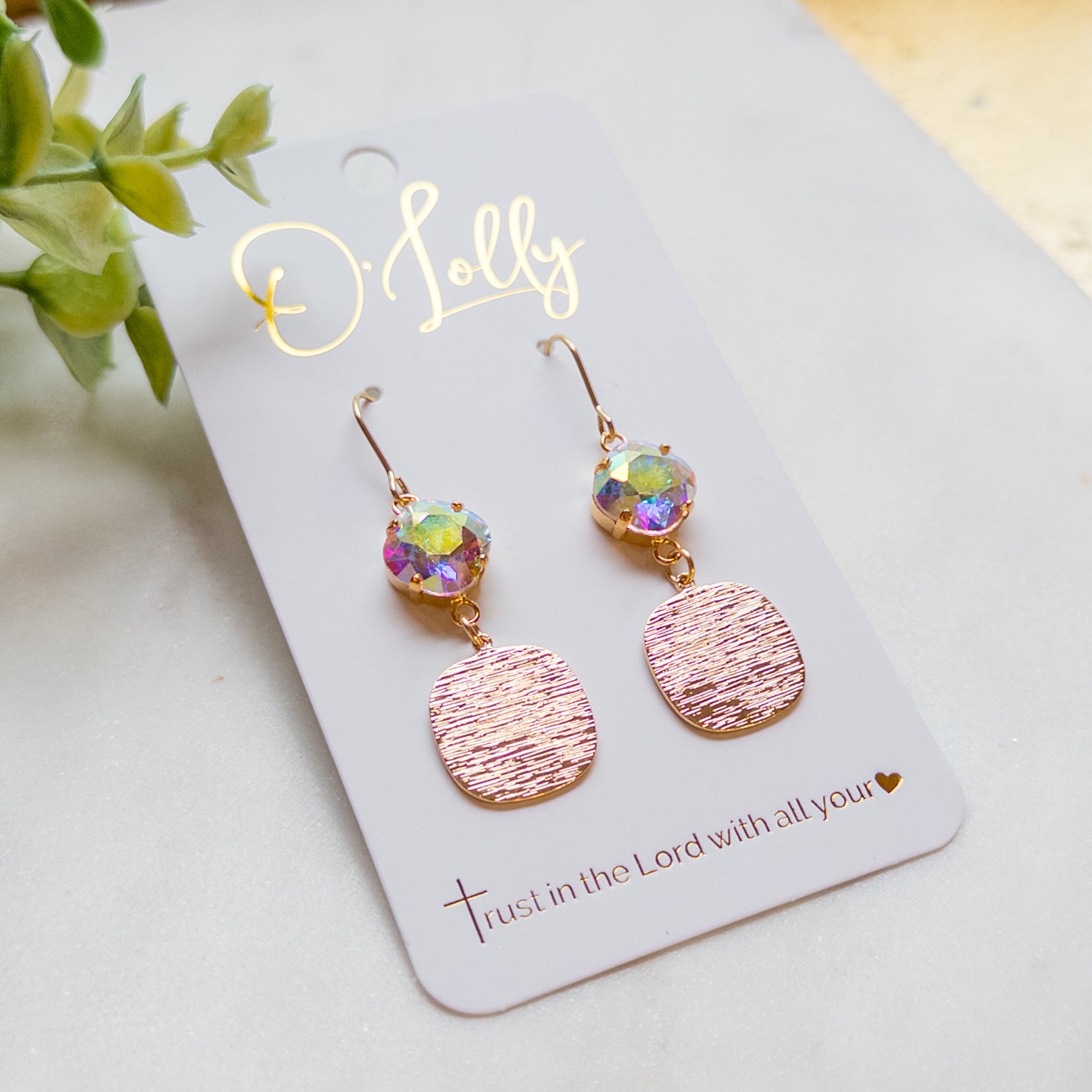 Elevate your style with the stunning AB Stone w/Gold Textured Square Dangle Earrings “Kinsley.” At 2 inches long, these earrings effortlessly blend elegance and modern flair, drawing attention to your radiant beauty. Let your personality shine through these unique pieces that are perfect for any occasion!