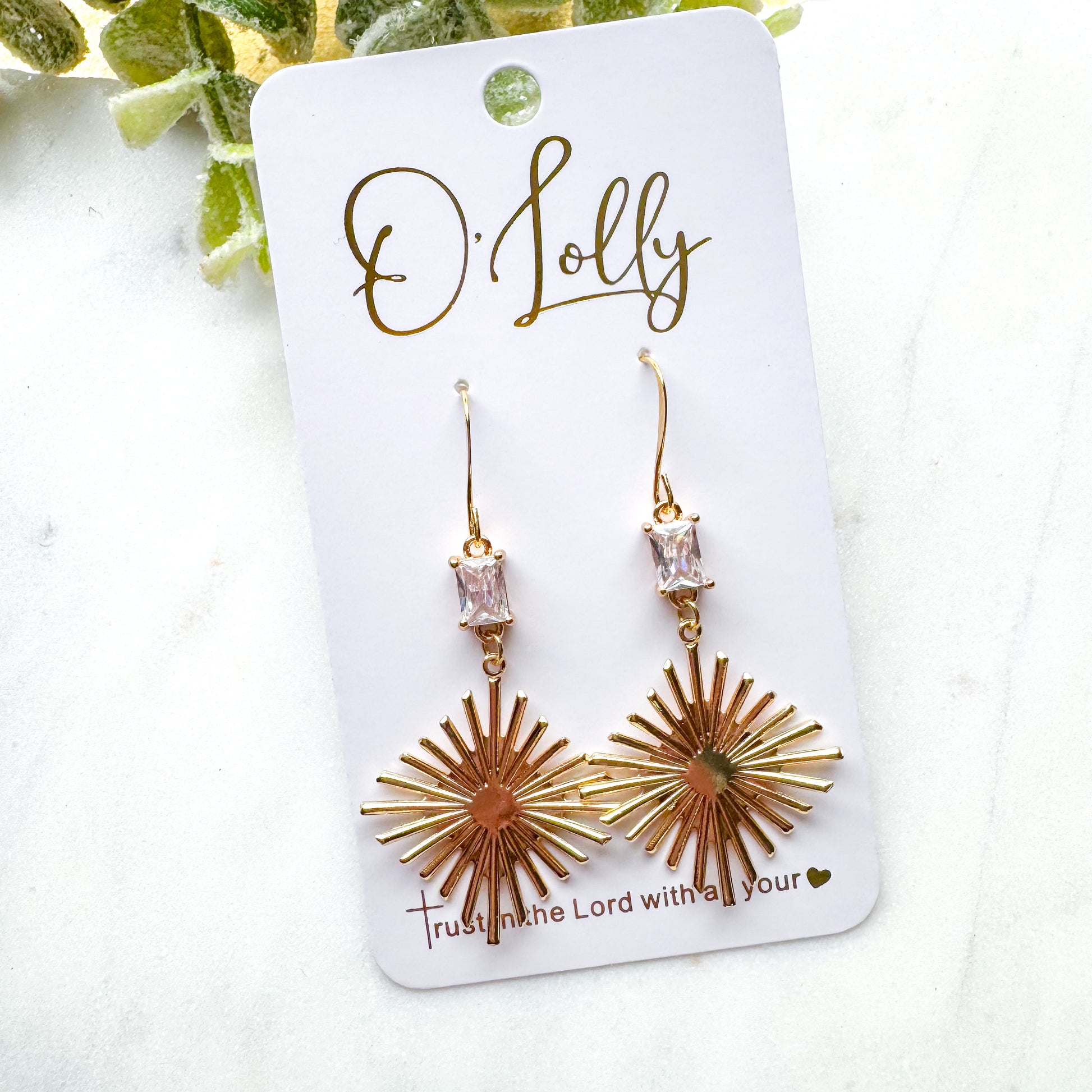 Cubic Zirconia Stone w/Gold Burst Dangle Earrings “Kenna”
